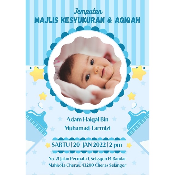 Kad Aqiqah Akikah Custom Invitation Card Baby Kids Boy Envelope Design Kab07 30pcs 50pcs Shopee Malaysia